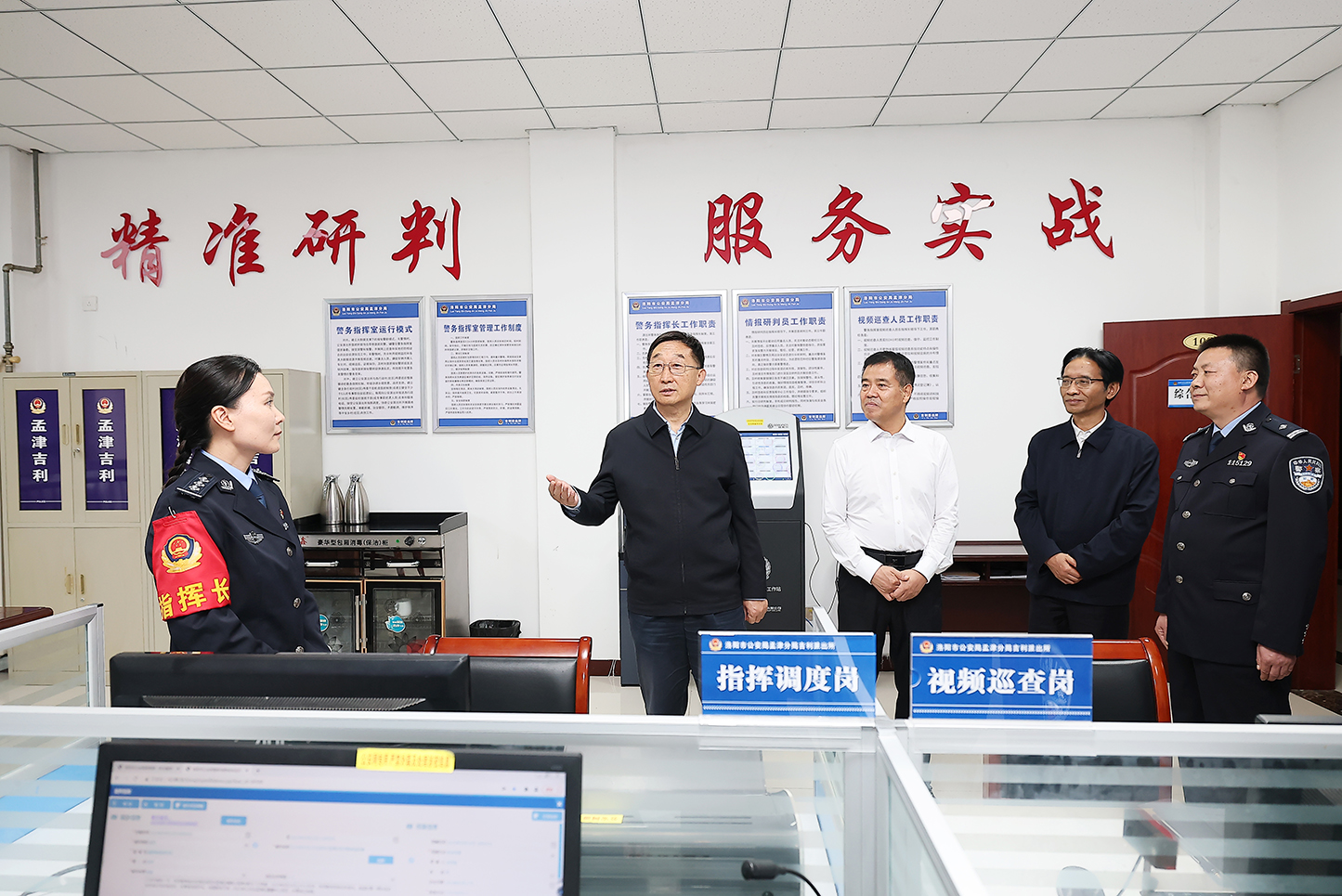 10月1日下午,省委书记刘宁到洛阳市公安局孟津分局吉利派出所,看望慰问坚守一线的基层民警,调研节日期间社会治安工作。 记者 董亮 摄 10月1日下午,省委书记刘宁到洛阳市孟津区,调研检查节日期间安全生产、社会治安等工作。 经过多年发展,孟津区先进制造业开发区集聚了多家龙头企业,初步形成了石油化工、装备制造、新材料等产业集群。刘宁来到中石化(河南)炼油化工有限公司,察看集中控制室,详细了解化工企业安全生产、百万吨乙烯项目建设等情况。“安全生产是民生大事,一丝一毫不能放松。”刘宁强调,化工产业危险源头不少、安全风险不小,要严守安全底线,履行企事业单位安全生产主体责任,汲取既往经验教训,完善风险排查、评估、预警和防控机制,积极研发应用一批先进安防技术,不断提高本质安全水平。要守住绿色底线,加快提档升级和更新改造,攻克环保技术瓶颈制约,实现集约高效管理和污染集中整治,促进产业链上下游联动发展。 洛阳市公安局孟津分局吉利派出所下辖4个社区、19个行政村,人口流动量大,规上企业较多。刘宁察看综合指挥室,亲切慰问坚守一线的基层民警。“习近平总书记在河南考察时指出,要盯牢风险隐患排查和治理,强化社会治安整体防控,有效防范化解重点领域风险,切实维护社会和谐稳定。”刘宁说,公安干警要践行“对党忠诚、服务人民、执法公正、纪律严明”总要求,坚持和发展新时代“枫桥经验”,以提高人民群众安全感和满意度为目标,完善立体化社会治安防控体系,加强社会面治安巡逻防控,提高见警率和接处警速度,依法惩治各类违法犯罪活动,提升维护公共安全能力水平。 调研中,刘宁听取孟津区经济社会发展情况汇报,强调要深学细悟习近平总书记在河南考察时重要讲话精神,聚焦“1+2+4+N”目标任务体系,以创新为引领培育壮大县域主导产业,加快构建现代化产业体系,以县域治理为突破口深化城乡融合,扎扎实实加强社会治理,实现高质量发展和高水平安全良性互动。要强化底线思维、极限思维,紧盯国庆中秋“双节”假期,聚焦交通运输、“三秋”生产、消防安全、文旅消费等重点领域,全面排查风险隐患,完善应急预案措施,严格值班带班制度,确保节假日社会大局稳定、群众平安过节。要高度警惕暴雨等灾害性天气带来的影响,突出矿山、尾矿库、危化品、建筑施工等重点行业领域和易受灾重点部位,对安全防范工作进行再检查再落实,确保灾害监测预警及时、应急处置保障有力。(记者 刘婵 张笑闻) 编辑:郭栩汝